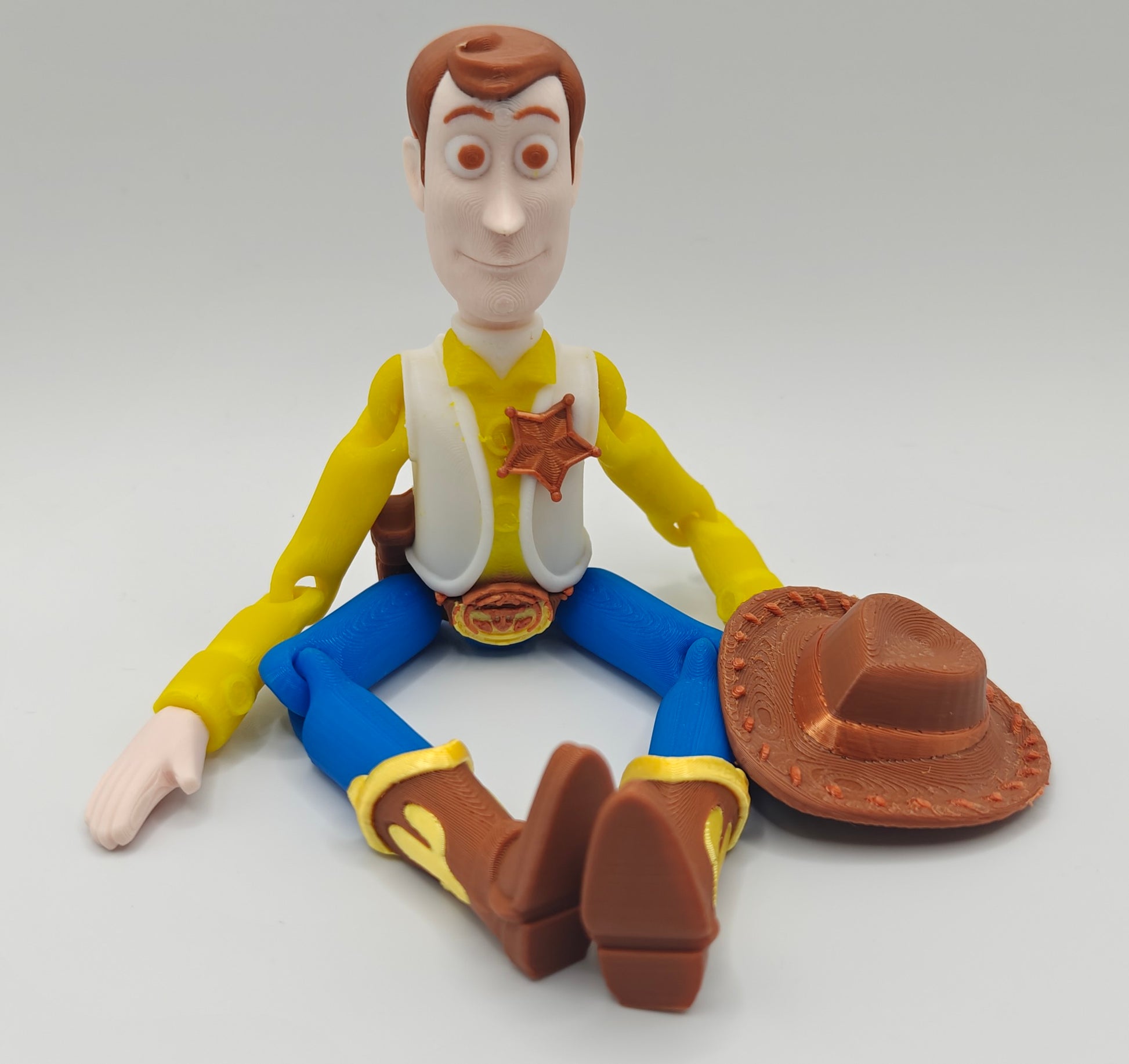 Round up some fun with this fully articulated cowboy sheriff keychain! Inspired by the classic western toy look, this 3D printed figure comes complete with his signature hat, vest, boots, and sheriff’s badge.