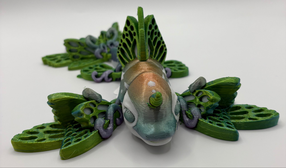 This 3D-printed articulated koi dragon blends the beauty of koi fish with the fantasy of a dragon. With intricate fins, flowing details, and a fully flexible body, it makes a mesmerizing collectible or display piece.