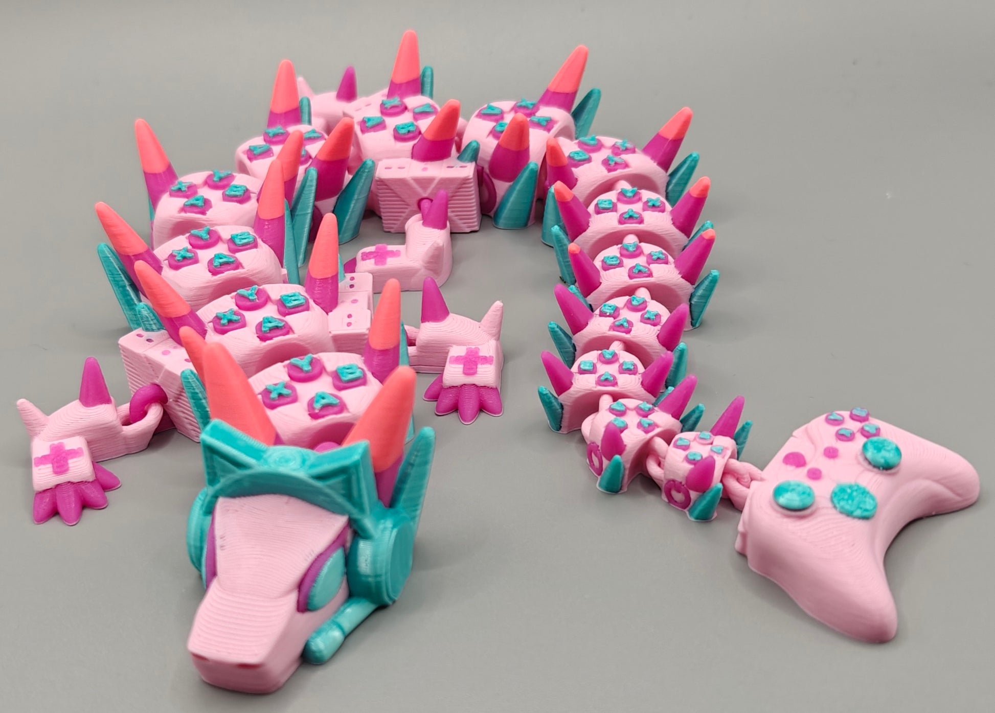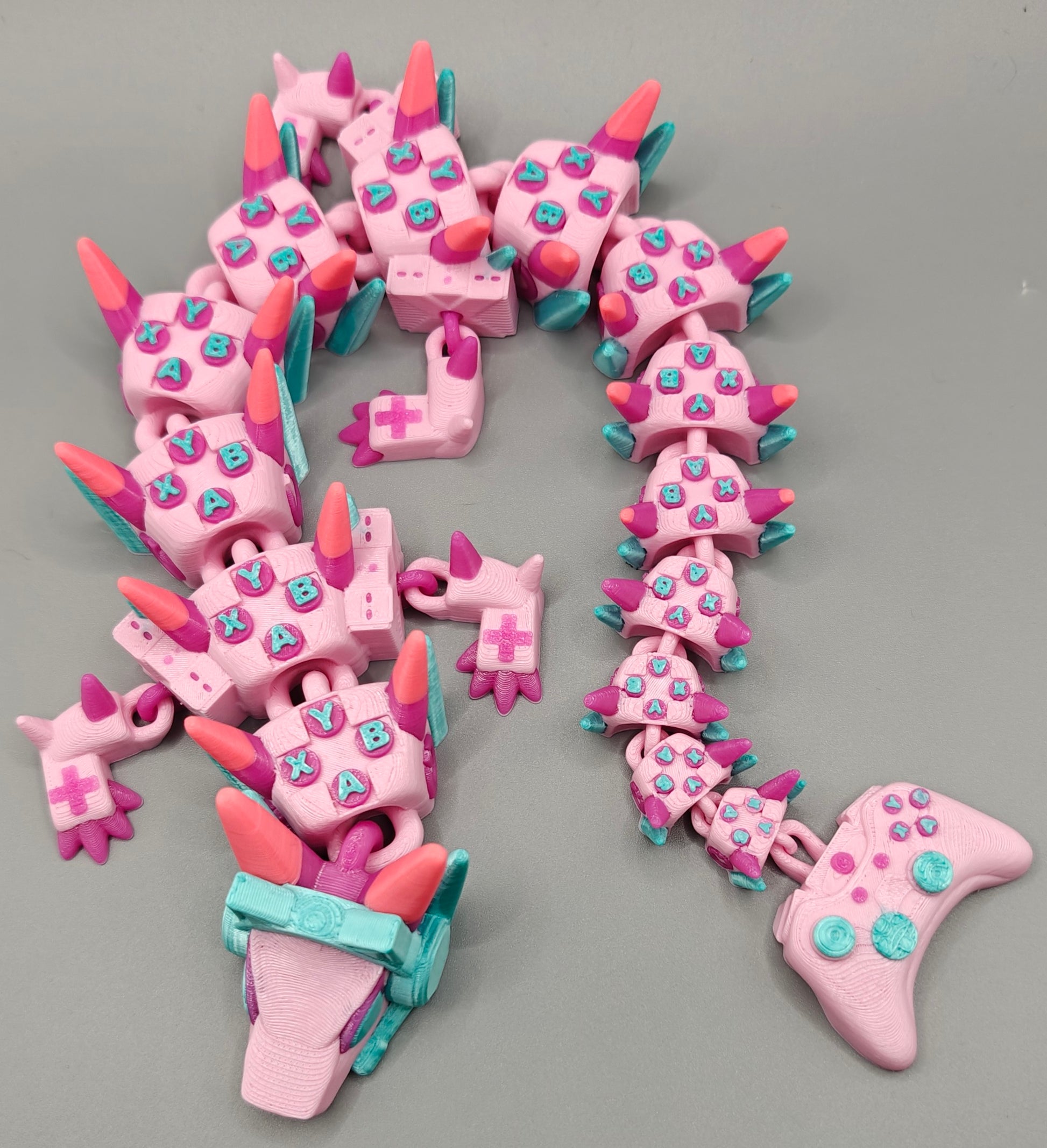 This Gamer Girl Controller Dragon blends pastel vibes with gamer energy to create the ultimate desk companion. Featuring controller-inspired details and a fully articulated body, this dragon is perfect for fidgeting during loading screens or displaying in your battle station.