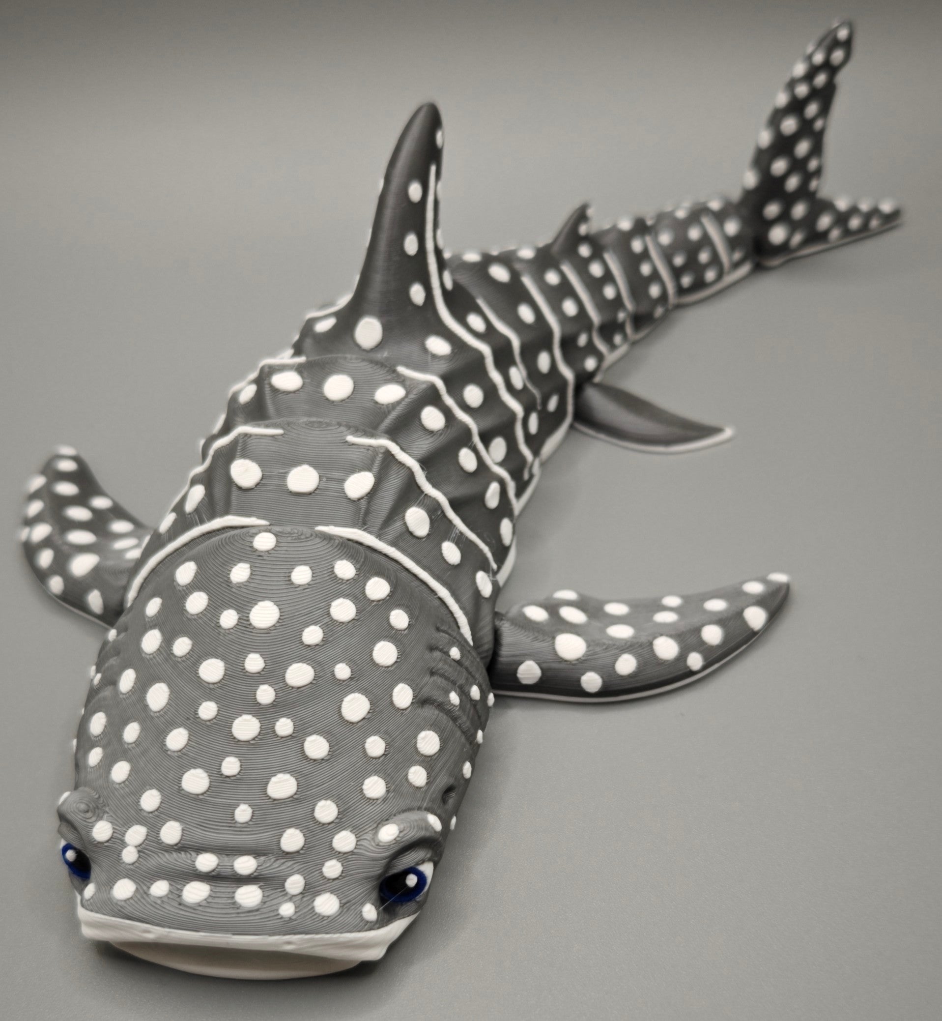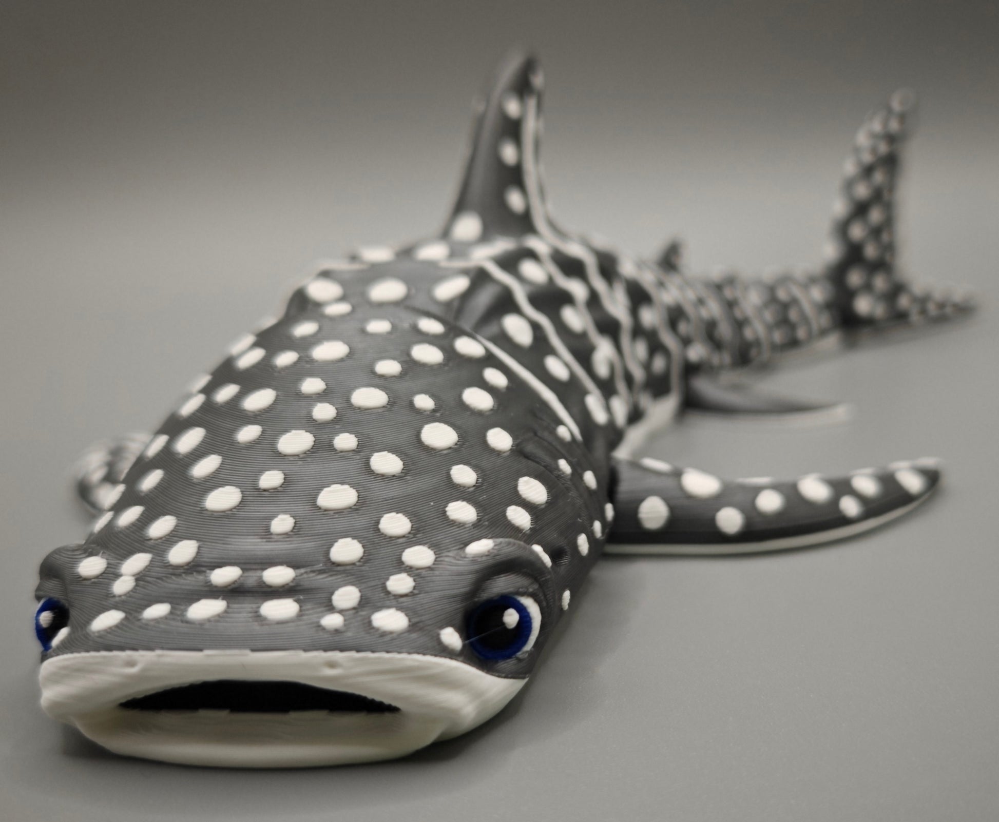 Every whale shark is printed in-house by Reds 3D Printing, ensuring consistent quality and vibrant color.